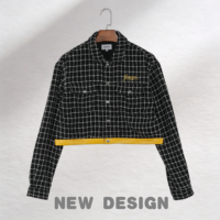 High Quality Fashionable Men's Plaid Mid-waist Embroidery Cotton Blended Jacket Coat