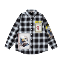 MEIHU Men's Self-Designed Flannel Long Sleeve Casual Shirt Printed Applique Plaid Patchwork 100% Cotton Breathable Anti-Wrinkle